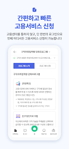 - 설치 후, 앱을 통해 "실업급여", "국민취업지원제도", "직업훈련" 등 다양한 서비스를 이용할 수 있습니다.